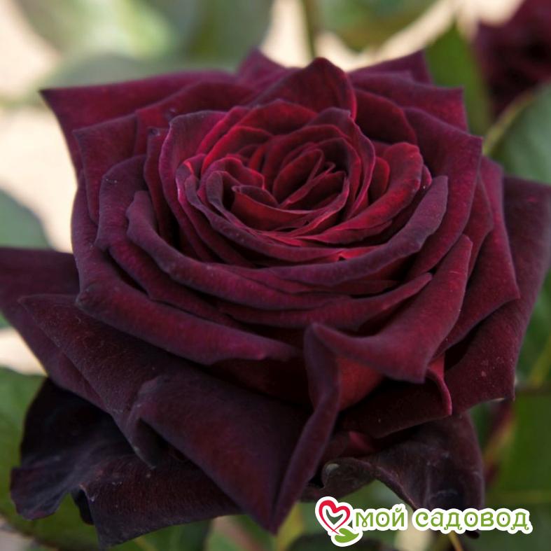 Роза Блек Мэджик Этот сорт выведен в Германии в 1997 году компанией Tantau. Благодаря необычной бордовой окраске с чёрным отливом роза получила название «Чёрная магия». Хотя Блек Мэджик предназначен для срезки, растение культивируется в качестве садового. Его выращивают даже в сухом, жарком климате (в том числе в Калифорнии, Австралии и Южной Африке). В 2000 году сорт был награждён призом «Золотая роза» в Баден-Бадене. Ботаническое описание Блек Мэджик – элегантная роза классической бокаловидной формы. Лепестки бутона плотные, с бархатной текстурой. Укладываются они спиралью. Цвет бордовый, с красивым чёрным отливом. В ярком освещении лепестки становятся красными. Наиболее насыщенный цвет у бутонов появляется в августе. В полном роспуске цветы крупные и округлые, по 1 шт. на побеге. Роза практически не источает аромата. Кустарник прямостоячий и стройный. Стебли жёсткие, плотные и ровные. Молодые ветви бледно-зелёные, а более зрелые – коричневого древесного оттенка. Листва крупная, тёмно-зелёная, удлинённой формы. По краям листовой пластинки расположены мелкие зазубринки. Поверхность с глянцевым блеском. В благоприятных условиях сочные «восковые» листья густо покрывают весь куст. Шипы на побегах в минимальном количестве. Применение Блек Мэджик идеально подходит для садово-парковых зон. Обильно цветущий куст станет оригинальным украшением рабатки и миксбордера. С помощью многолетника оформляют розарии, расположив его в центре композиции. Также рассматриваемая культура хорошо гармонирует с золотисто-оранжевой розой Голд Маджик. Агротехника Сорт Блек Мэджик любит суглинистый грунт без застоя почвенных вод (оптимальный уровень – 1 м под землёй). Кислотность должна варьировать в пределах 5,8 – 6,8 единиц. К посадочным работам приступают весной, пока не сформировались почки. В регионах с тёплым климатом рассаду можно переносить на участок и в осенний период. Желательно, чтобы клумба с розой находилась на солнце (например, с юго-западной или южной стороны). Можно высаживать многолетник рядом с высокими кустарниками и деревьями. Они послужат защитой от холодных сквозняков. Если на посадочном материале имеются поражённые болезнями или слабые отростки, их надо состричь. Остальные побеги укорачивают. Важно сохранить на кусте 3 – 4 глазка. Посадочную лунку подготавливают диаметром и глубиной 60 см. Рассаду осторожно погружают в ямку и расправляют корешки. Место прививки заглубляют на 3 – 4 см. Поскольку сорт Блек Мэджик стремительно разрастается, между саженцами оставляют интервал в 90 см. После посадки культуру поливают тёплой водой и окучивают. При образовании первых почек, землю вокруг ствола необходимо убрать. Приствольную зону лучше замульчировать навозом или древесными опилками. Рассматриваемый сорт положительно отзывается на органические подкормки. До начала бутонизации в почву вносят навоз или перегной. В дальнейшем рассаду подкармливают комплексными минеральными составами (калийная соль + аммиачная селитра + суперфосфат). Когда распустится листва, кустарнику понадобится разбавленный водой коровяк (в пропорции 1:10). Дополнительно можно добавить калий и суперфосфат. В середине июля не лишними будут препараты, насыщенные калием, азотом и суперфосфатом. Ранней весной проводят обрезку розы. В первую очередь избавляются от выме